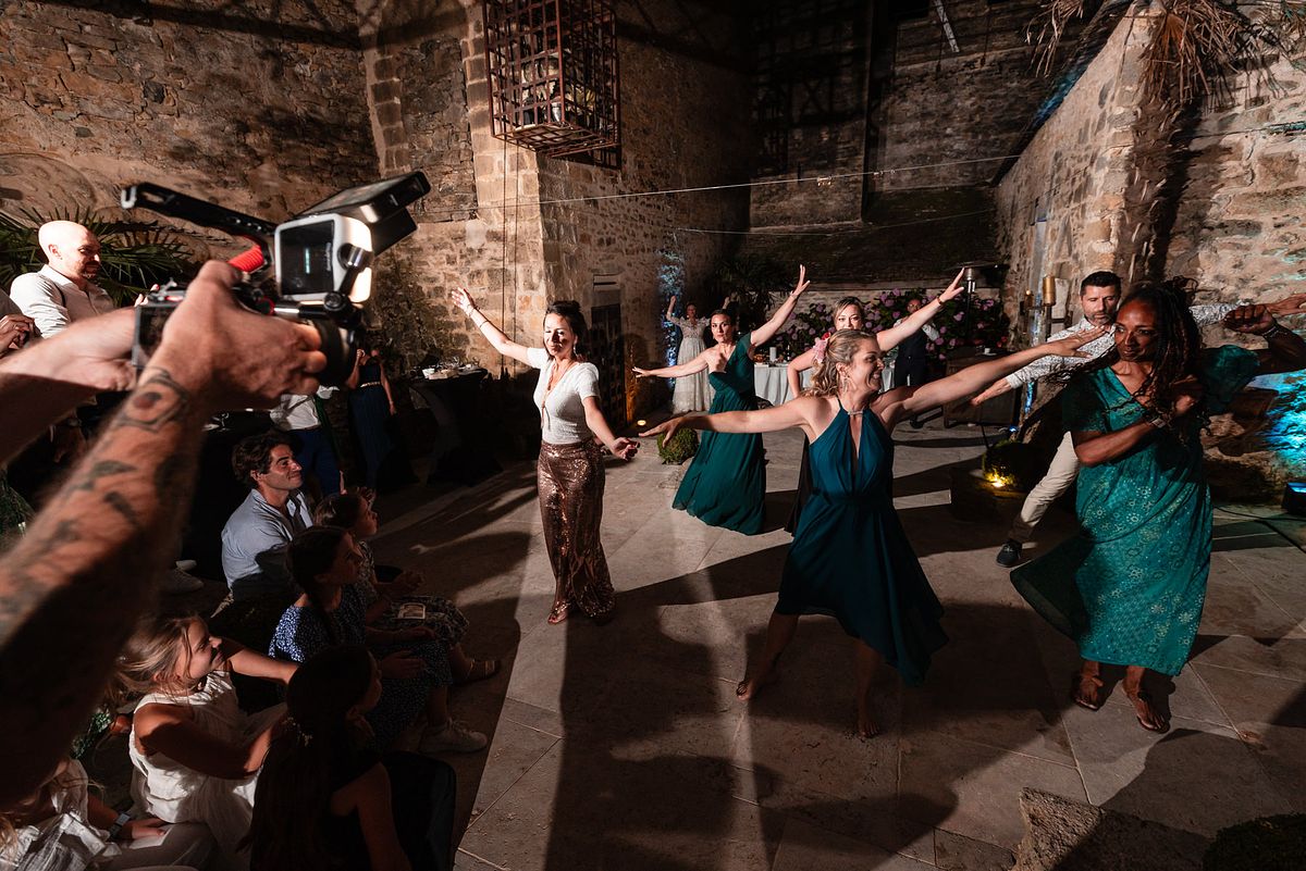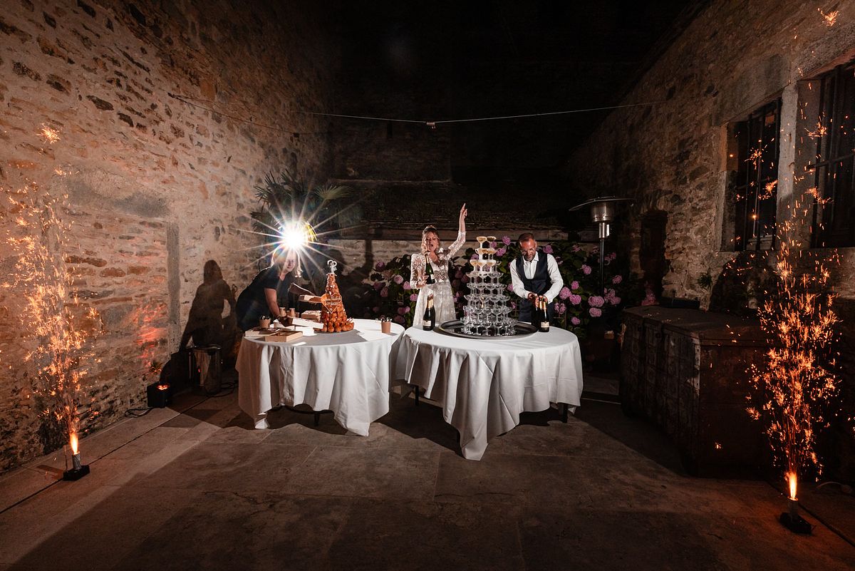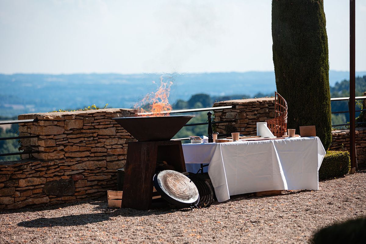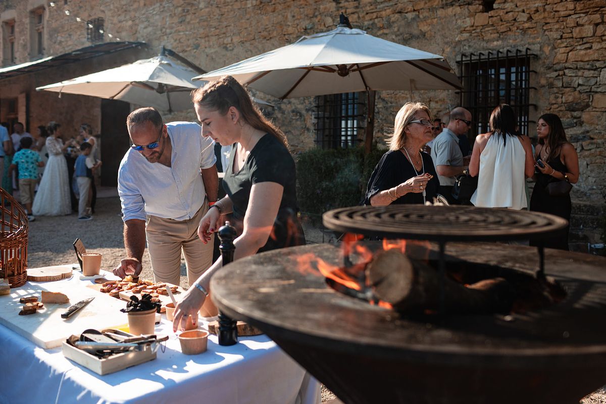 Comme il ne faisait pas assez chaud dans nos corps et dans nos cœurs, c’est un magnifique Brasero qui va nous accompagner tout au long du cocktail !!! Le soleil se couchant, on pu apercevoir des lumières magiques sur sa robe anna sposa ainsi que sur le costume Belluci Domenico de Christophe !!!