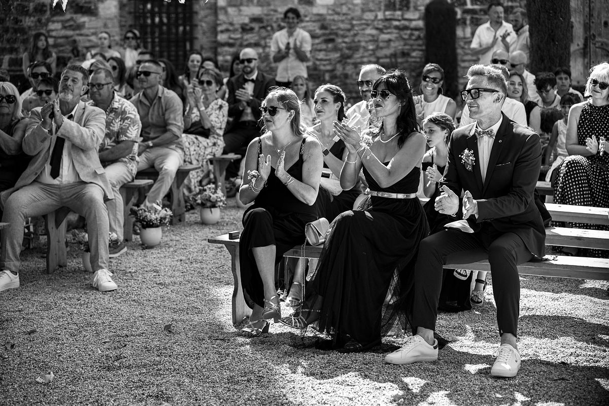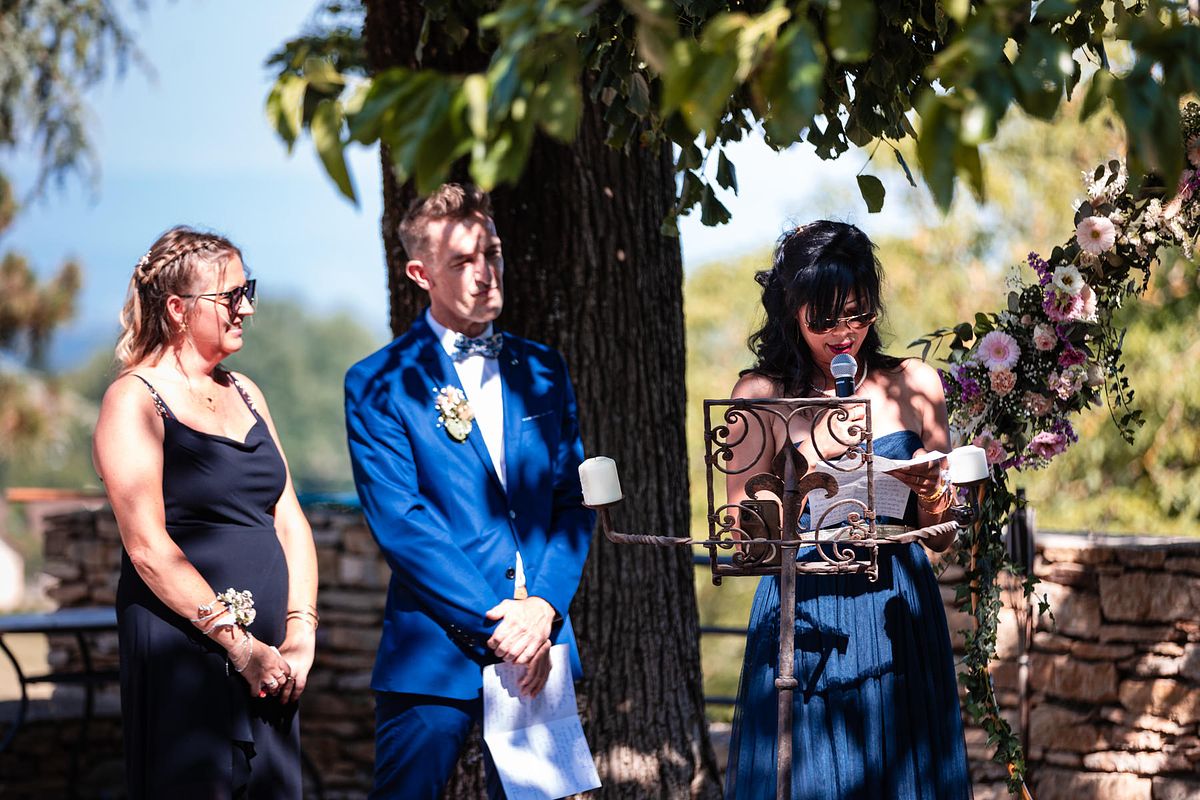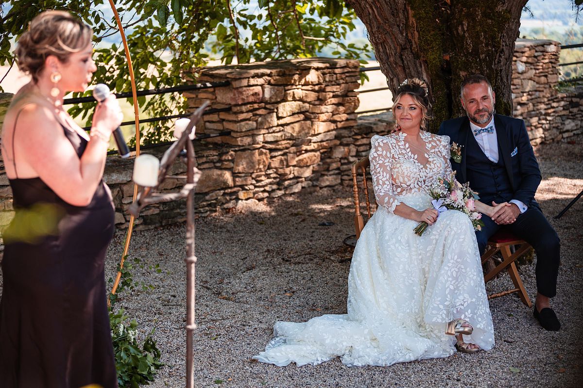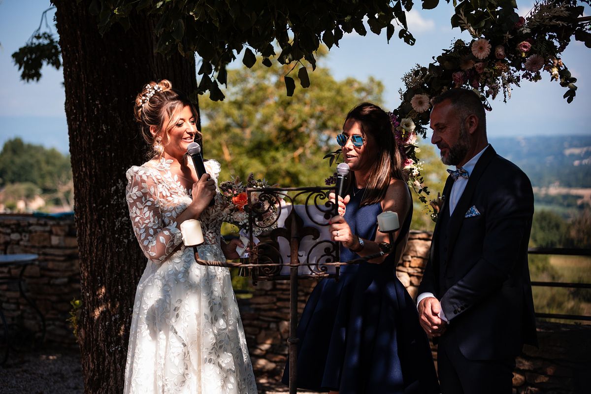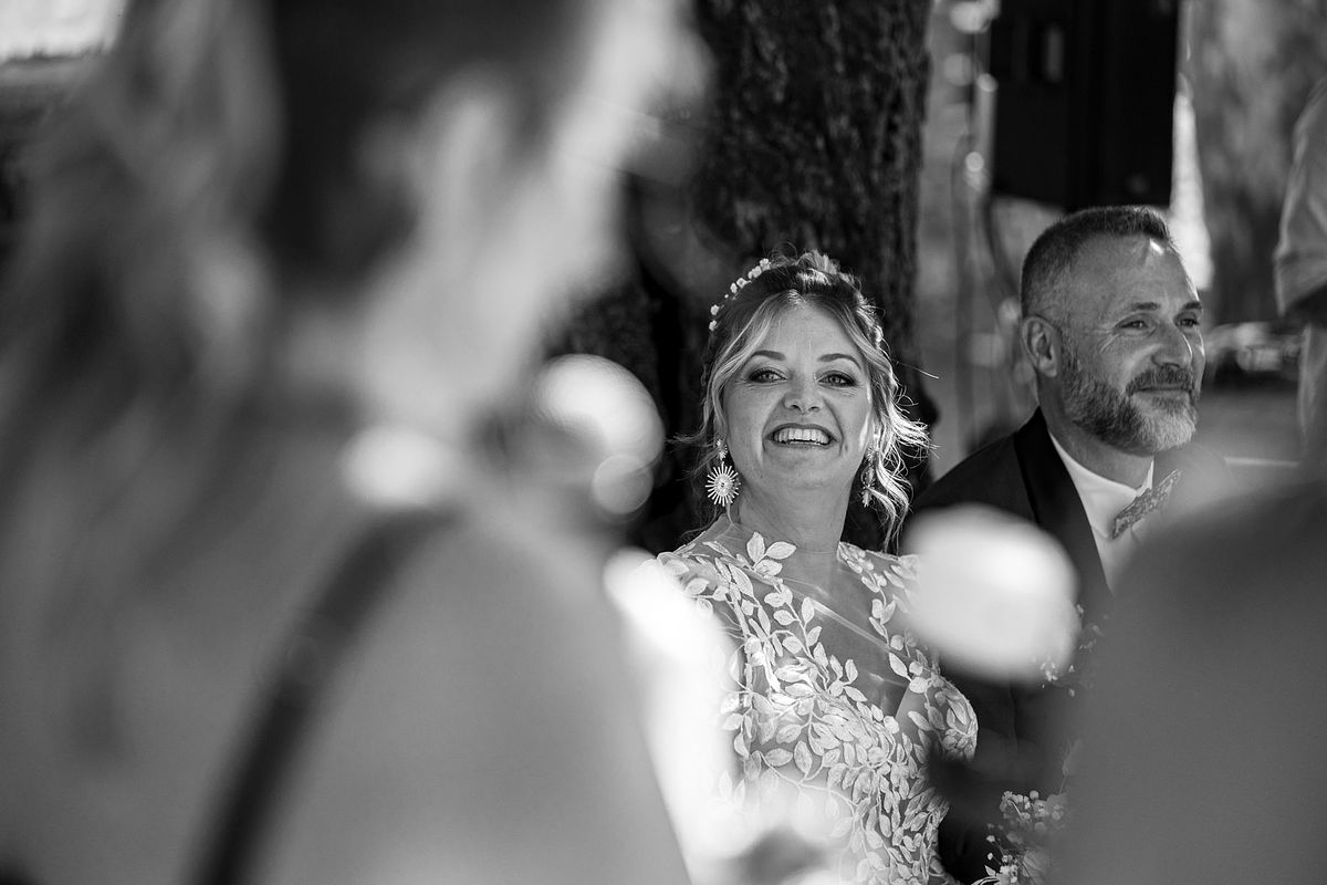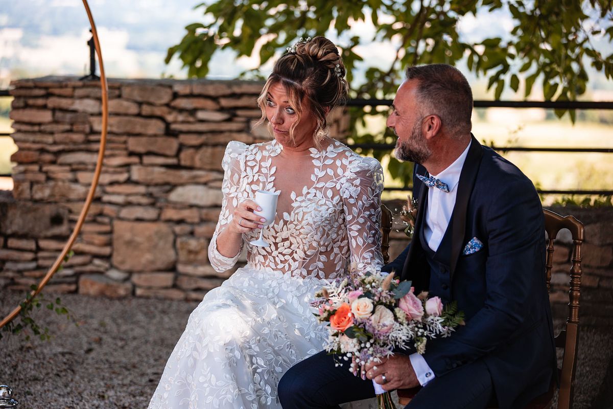 En pensant au mariage de Sandrine et Christophe, deux choses me viennent en tête de manière foudroyante …. La température extrême ce jour-ci avec une cérémonie laïque mi ombragée mi sous un soleil brûlant !! Et la deuxième chose c’est l’émotion de leurs enfants et notamment de la fille de Sandrine qui me fit forcément penser aux deux miennes !!