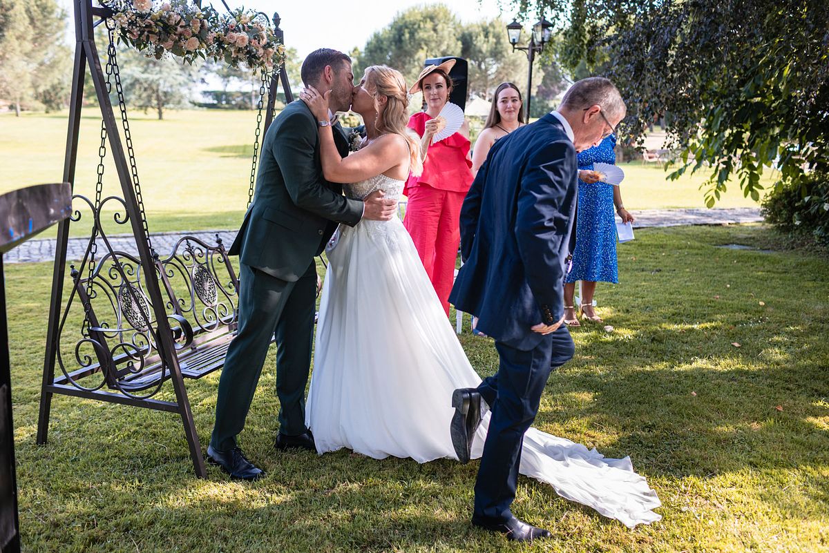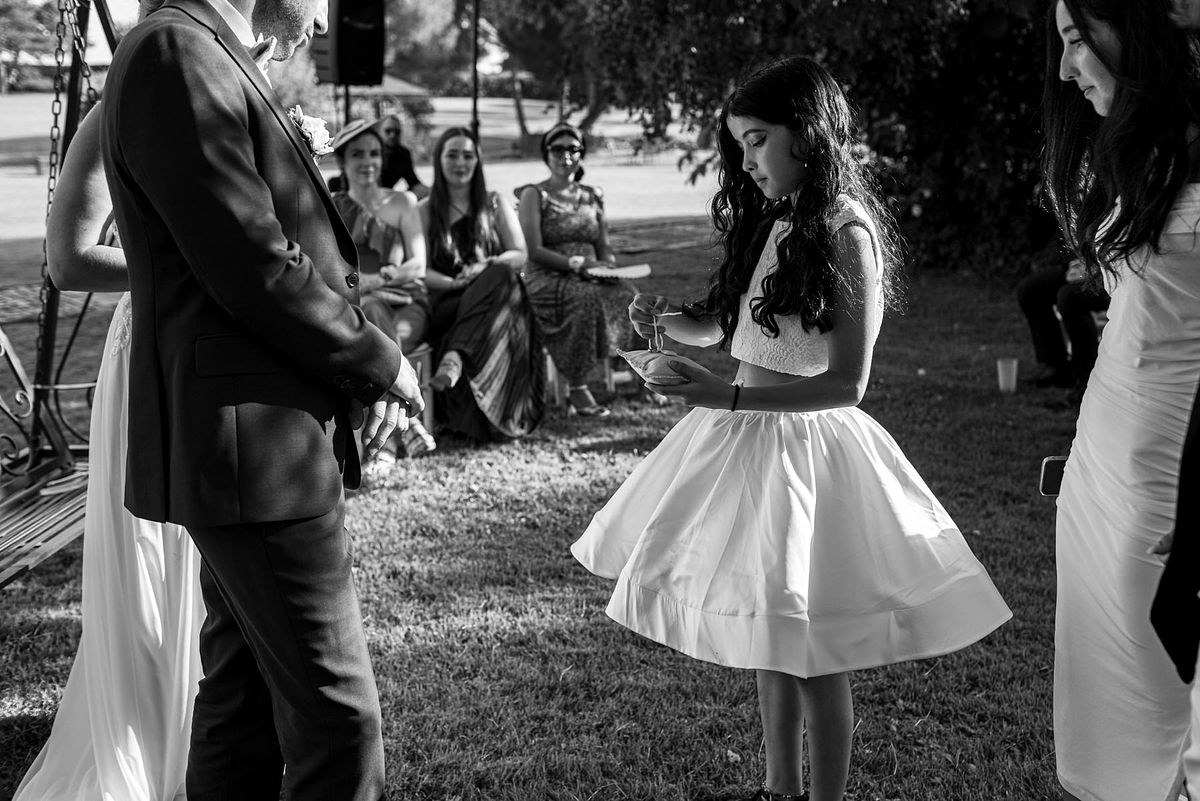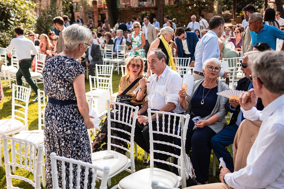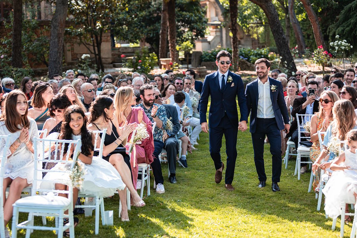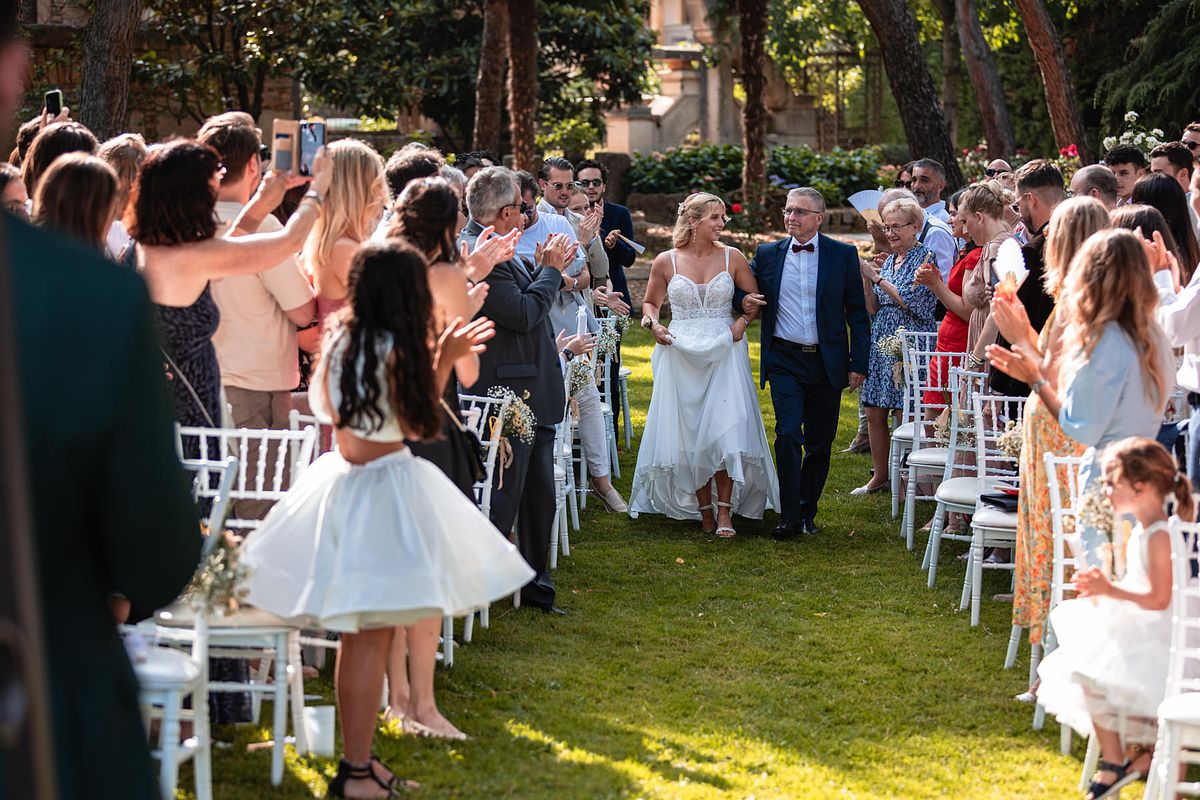 La cérémonie laïque s’est déroulée dans le parc, sous une lumière d’été et un décor floral délicat, idéal pour un mariage champêtre chic. Les discours se sont enchaînés, entre déclarations touchantes, anecdotes drôles et interventions des enfants, qui ont littéralement volé la vedette par leur sincérité et leur énergie, créant des images fortes et authentiques.