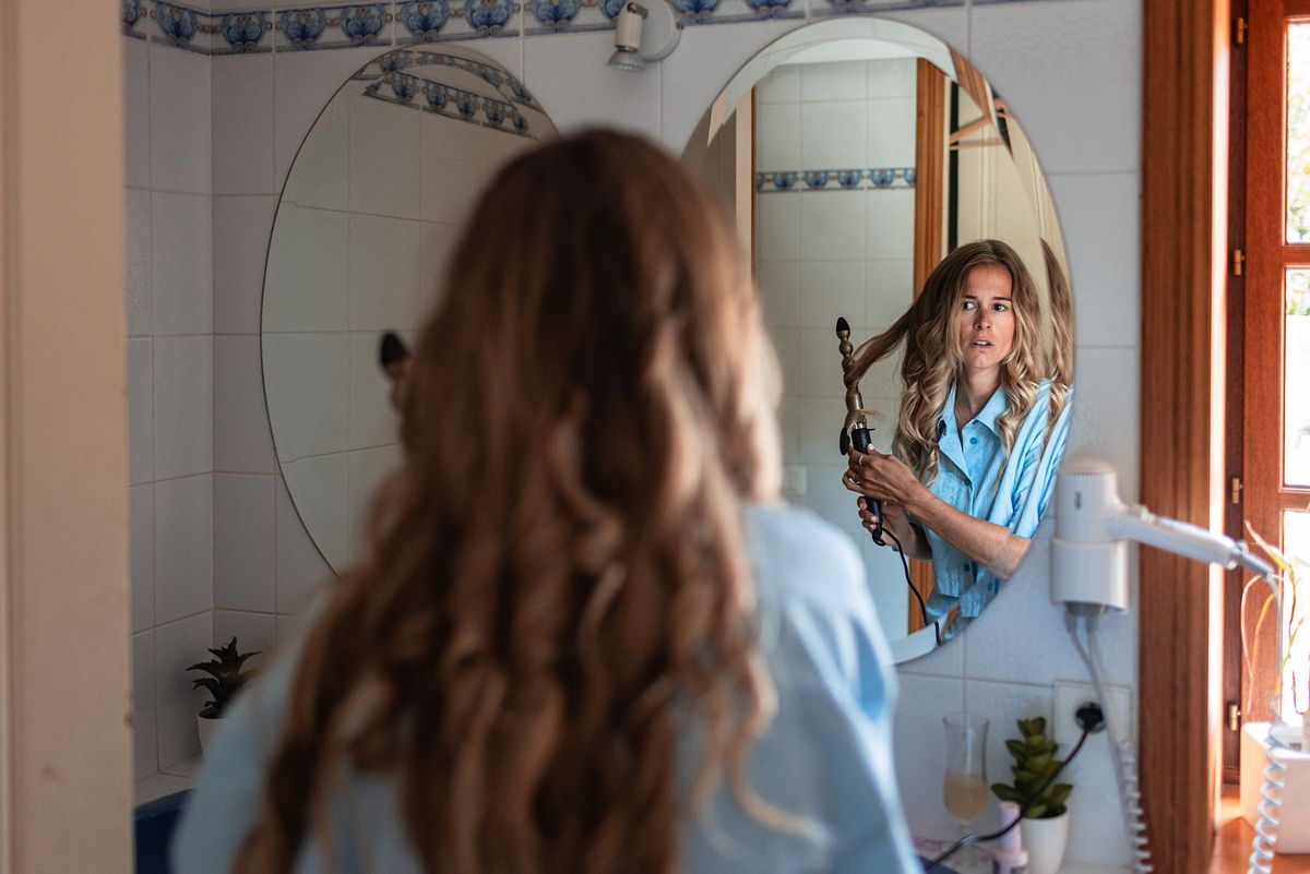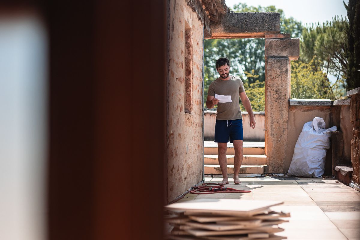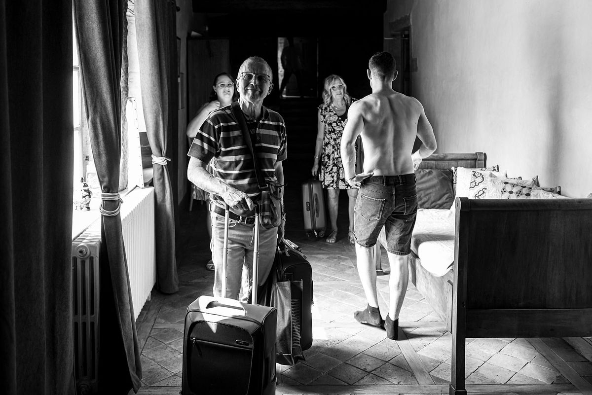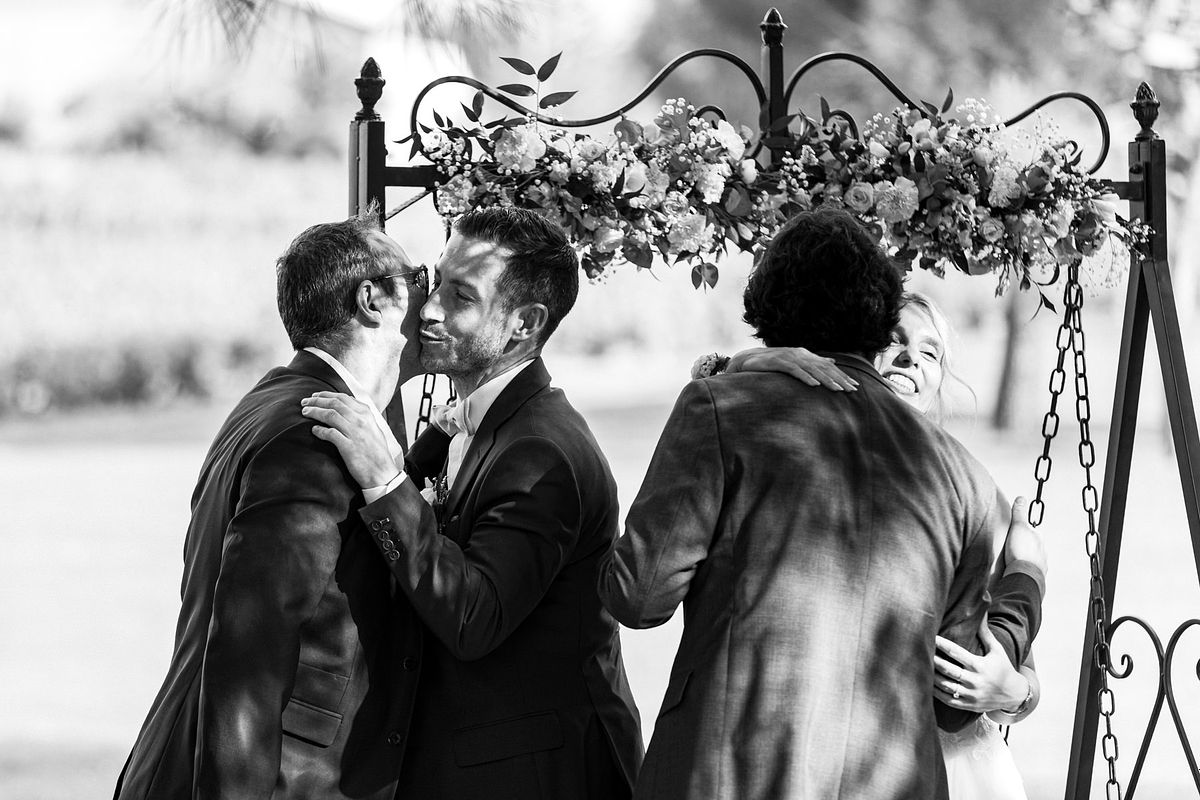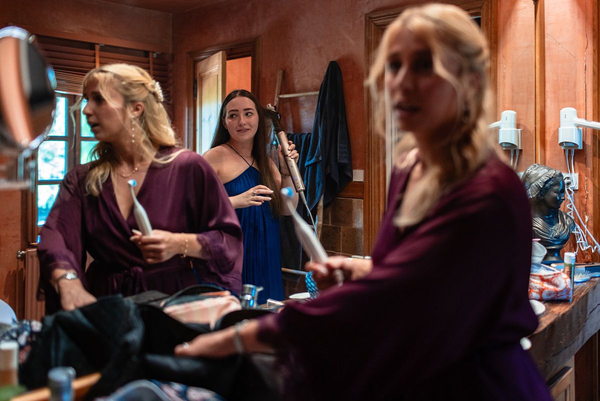 La journée a commencé dans l’intimité d’une des chambres du Domaine de la Ruisselière, où Albane s’est préparée entourée de ses témoins et amies, entre retouches de robe, fous rires et petites attentions. Pendant ce temps, Anthony s’affairait déjà dehors à organiser les derniers détails de la cérémonie laïque dans le jardin, installant les chaises blanches comme pour accueillir lui‑même chacun de leurs invités.